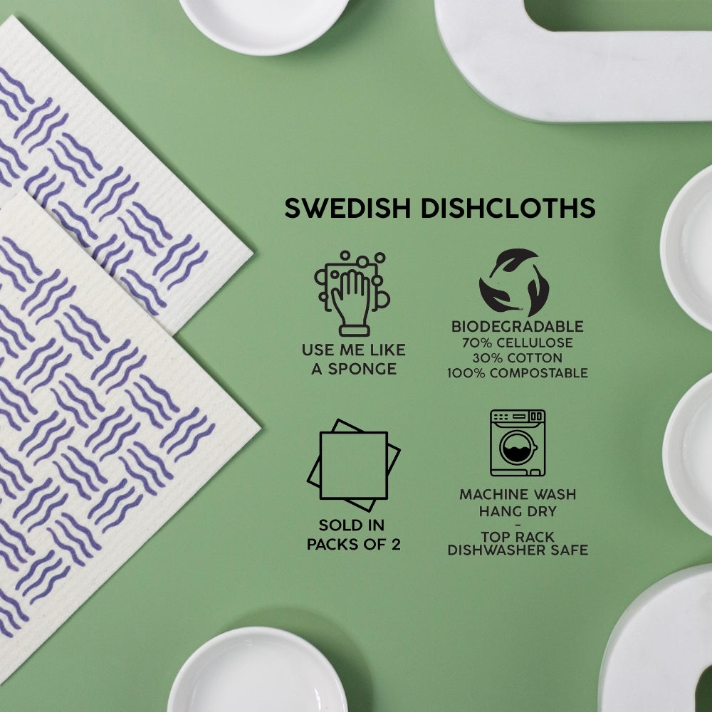 What makes these dishcloths truly special is their eco-friendly nature. Unlike traditional disposable paper towels, our Swedish Dishcloths are reusable and sustainable. They are designed to last longer and reduce waste, making them a fantastic choice for anyone looking to make a positive impact on the environment. When it's time for a clean, simply toss them in the washing machine, or the top rack of you dish washer, and they're ready to go again.